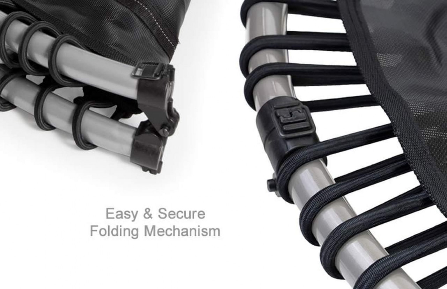 Настройте свой отскок. Соединители FlexBounce и эластичные шнуры с узлами позволяют пользователям затягивать коврик для прыжков с желаемой плотностью. Самая мягкая настройка по умолчанию предпочитается прыгунами, которые любят более глубокий отскок или имеют меньший вес. Самую жесткую настройку предпочитают прыгуны, которые любят более быстрый и отзывчивый отскок или имеют больший вес.